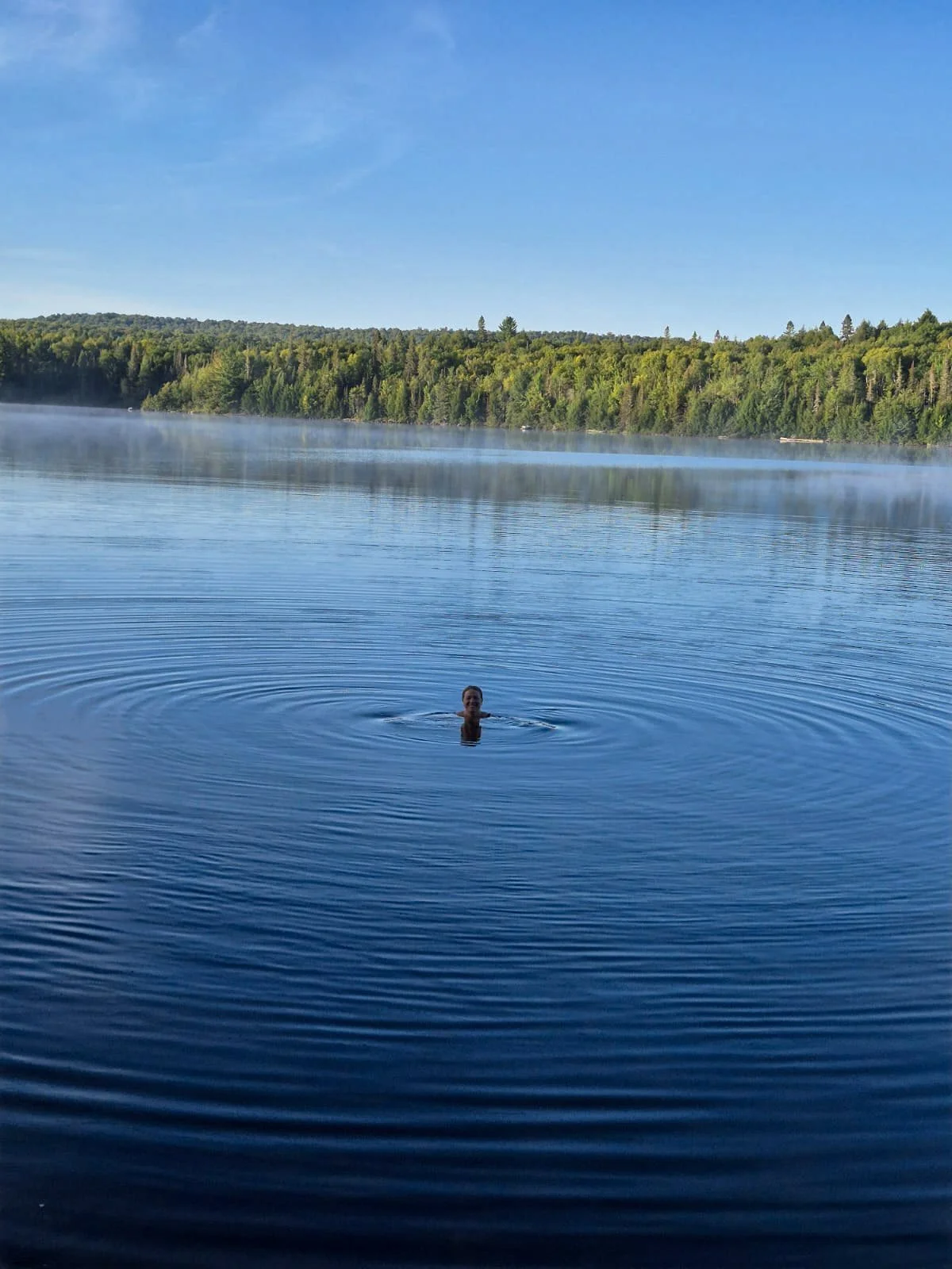 Morning swim on day 2 on Whitebirch Lake, Algonquin, September 2025